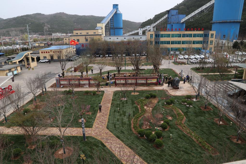 順著手勢,眼前是一座被綠色覆蓋的礦區(qū),目光所及之處,綠意盡染,墨綠色的草地、迎風招展的桃花、杏花等,將礦區(qū)裝扮成了一個春意盎然的新礦山?!?/p>