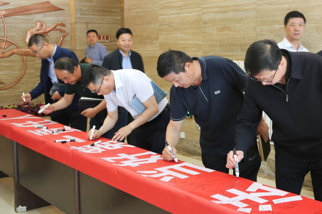 公司領(lǐng)導(dǎo)班子、機(jī)關(guān)各部室及各基層單位參會(huì)人員在印有“安全生產(chǎn)月”活動(dòng)主題“遵守安全生產(chǎn)法 當(dāng)好第一責(zé)任人”的橫幅上鄭重簽字,為安全發(fā)展作出莊嚴(yán)承諾。