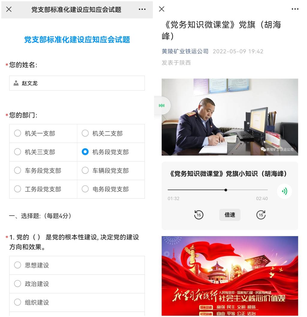 近期,筆者從黃陵礦業(yè)鐵運(yùn)公司機(jī)務(wù)段黨支部了解到,該公司為了不斷提升各黨支部委員、黨務(wù)專干、全體黨員的黨建知識(shí)水平和政治素養(yǎng)。今年以來,該公司黨委通過豐富學(xué)習(xí)教育的內(nèi)容和方式,每周利用微信公眾號(hào)向全體黨員推薦“黨務(wù)知識(shí)微課堂”、“黨員應(yīng)知應(yīng)會(huì)”、“黨支部標(biāo)準(zhǔn)化建設(shè)”等內(nèi)容。并組織全體黨員開展了“黨支部標(biāo)準(zhǔn)化建設(shè)”應(yīng)知應(yīng)會(huì)考試,使微信平臺(tái)真正成為傳播信息的重要窗口,隨時(shí)隨地、易學(xué)易懂,營(yíng)造了“以考促學(xué)、以學(xué)促做、以做踐學(xué)、知行合一”的良好氛圍,提高了黨員對(duì)政治理論學(xué)習(xí)的自覺性和主動(dòng)性,進(jìn)一步提高了工作熱情,提升了黨建工作水平。