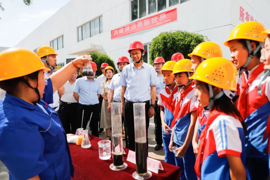 活動(dòng)期間,參觀人員一同觀看了礦井水處理原理實(shí)驗(yàn)展示,“零距離”見(jiàn)證了廢水如何從又黑又臟變得干凈清澈,學(xué)生們驚呼:簡(jiǎn)直就像變魔術(shù)一樣,太神奇了!