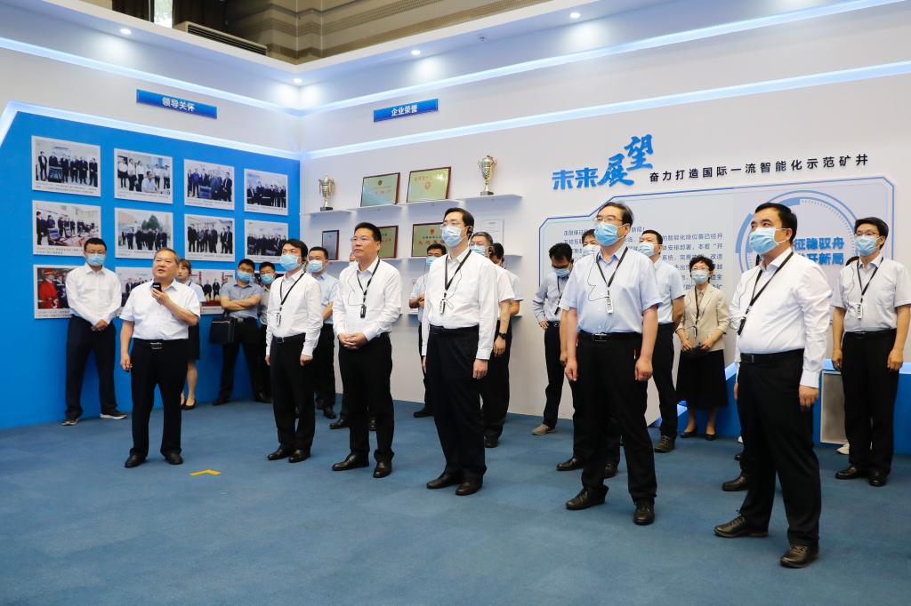 在一號(hào)煤礦智能礦井實(shí)訓(xùn)基地,雷貴生圍繞智能礦井、智慧礦區(qū)建設(shè),電力產(chǎn)業(yè)項(xiàng)目建設(shè),循環(huán)經(jīng)濟(jì)項(xiàng)目建設(shè)等方面情況,向觀摩組進(jìn)行了現(xiàn)場匯報(bào)。隨后,觀摩組實(shí)地察看了智能管控云平臺(tái)、“四治理一優(yōu)化+AI+NOSA”安全管理體系、基于動(dòng)態(tài)地質(zhì)模型大數(shù)據(jù)融合迭代規(guī)劃控制策略的智能開采等技術(shù)創(chuàng)新應(yīng)用與示范工程的建設(shè)及運(yùn)行情況。