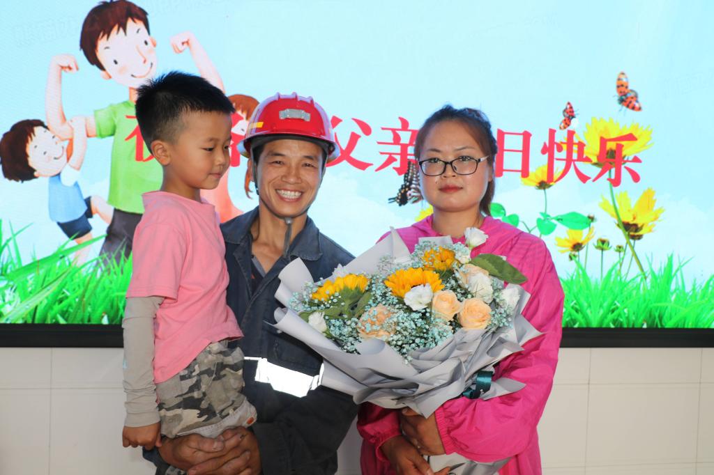 “老公,你辛苦了,我和兒子希望你每天都平平安安的,就是我們最大的幸福!”“爸爸,祝您父親節(jié)快樂!”“長這么大,我還是第一次收到鮮花,我一定注意安全,按章操作,謝謝老婆,謝謝兒子,這個(gè)父親節(jié)過的特別有意義?!边@是下午2點(diǎn),父親節(jié)主題活動(dòng)現(xiàn)場,生產(chǎn)準(zhǔn)備隊(duì)職工劉鋒和家人的對(duì)話。