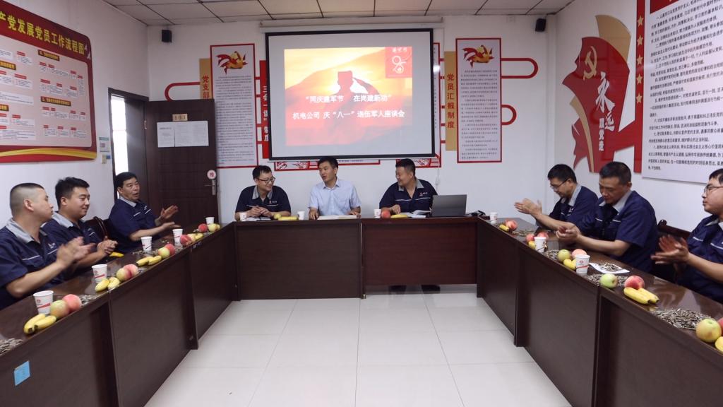 為慶祝中國(guó)人民解放軍建軍95周年,進(jìn)一步傳承紅色基因,弘揚(yáng)擁軍優(yōu)屬優(yōu)良傳統(tǒng),營(yíng)造尊崇和關(guān)愛(ài)退役軍人的濃厚氛圍,8月1日,機(jī)電公司工會(huì)組織開(kāi)展了慶“八一建軍節(jié) ”系列活動(dòng),該公司共14名退役軍人參加了本次活動(dòng)。