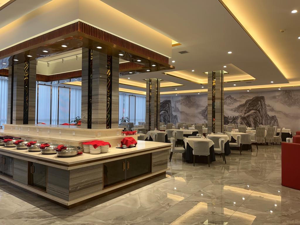 據悉,在此次升級改造過程中,礦業(yè)賓館針對餐飲部自助餐廳使用年限久遠、設施設備陳舊、污漬無法徹底清理等問題,對太陽廳進行了地板墻面翻新,此前較為落伍的電視背景墻也換成了更為時尚大氣的山水畫,水果檔上方也由之前的靜態(tài)圖轉變成LED顯示屏,整個太陽廳看起來更為明亮、大氣、精致。