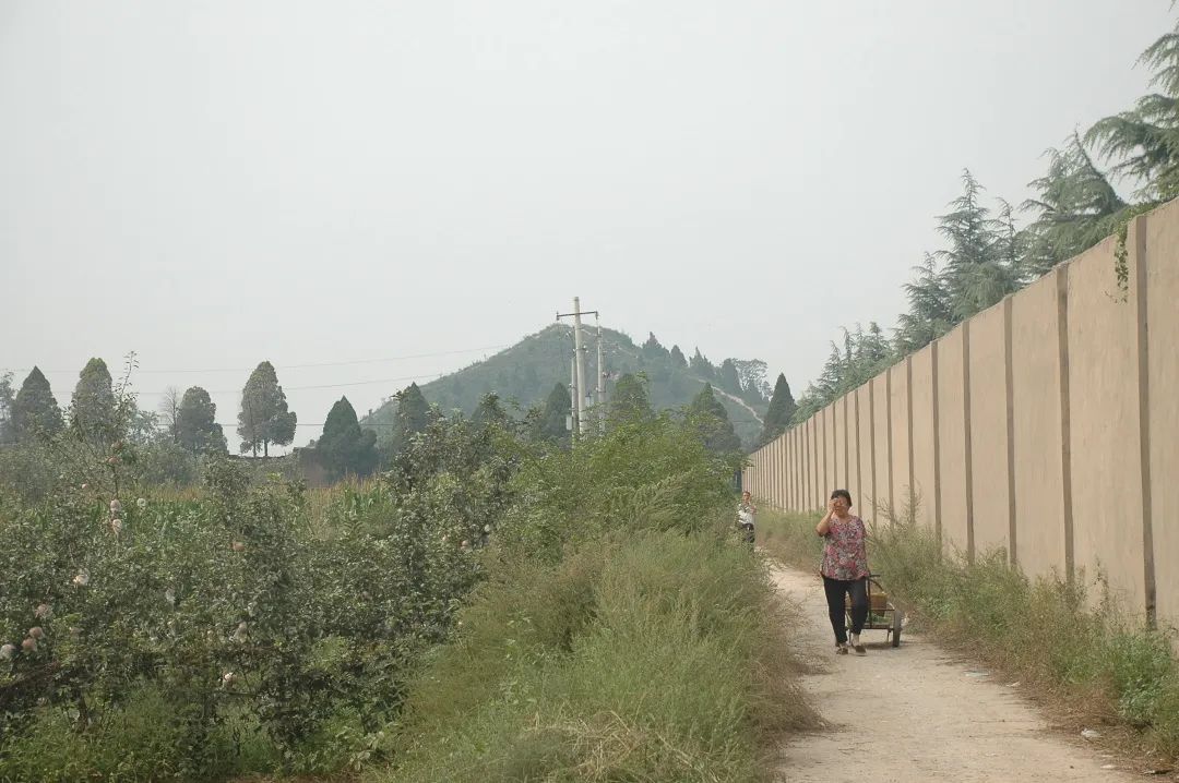 幾經(jīng)周折后,總算是離開了農(nóng)田來到公路之上,路邊的垂柳已經(jīng)迫不及待地舒展開了身姿,將樹蔭灑在路邊,行在其中,愜意舒適,只是近在眼前的茂陵封土步行起來卻如此遙遠,便不由又想起大爺來,若是三蹦子能開到這條公路上來,豈不是要節(jié)約不少力氣了。約莫半個小時,在爬過一個長長的大坡后終于來到封土之下。封土下立有二碑,一為上世紀(jì)六十年代所立,書有漢武帝劉徹茂陵字樣,另一通為畢沅碑,和其他一樣,上書俊灑隸書,轉(zhuǎn)過碑身后便到達封土之下,其遍植松柏,只是樹齡看來較為年輕。沿封土向西便是農(nóng)田,麥苗蔥郁,陵園遺址較為明顯,隔著不遠處是另一尊高大封土,看上去恰似分開的兩個大磨盤,那便是被村民們稱之為磨子陵的英陵,里面長眠的即為傾國傾城的李夫人,只是此番前來較為倉促,并未近身拜謁。
