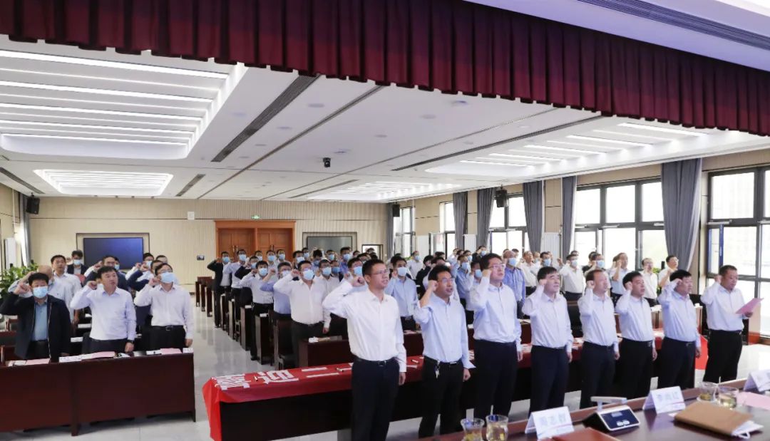 公司總工程師李團(tuán)結(jié)帶領(lǐng)參會(huì)人員進(jìn)行安全宣誓。