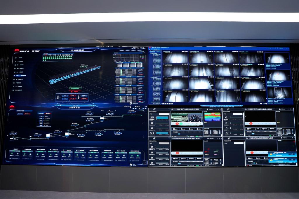 走進(jìn)主運(yùn)輸系統(tǒng)監(jiān)控中心,主運(yùn)輸系統(tǒng)、皮帶運(yùn)行、皮帶異物識別、皮帶巡檢機(jī)器人視頻畫面盡收眼底,4個大屏幕、36個模塊小分屏實(shí)現(xiàn)全天候作業(yè)。該礦在井下運(yùn)輸系統(tǒng)的裝載點(diǎn)、驅(qū)動部、儲帶倉等關(guān)鍵點(diǎn)安裝了高清攝像頭66個,建立了安全生產(chǎn)監(jiān)控系統(tǒng),實(shí)現(xiàn)了重點(diǎn)部位的立體視頻監(jiān)控全覆蓋。