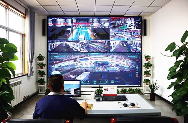 走進(jìn)機(jī)電公司AI風(fēng)控調(diào)度指揮中心,LED全彩顯示大屏、軟件控制臺(tái)、語音廣播系統(tǒng)等映入眼簾,綠色閃動(dòng)的方框?qū)崟r(shí)監(jiān)控著各車間生產(chǎn)、加工、維修等場(chǎng)景。