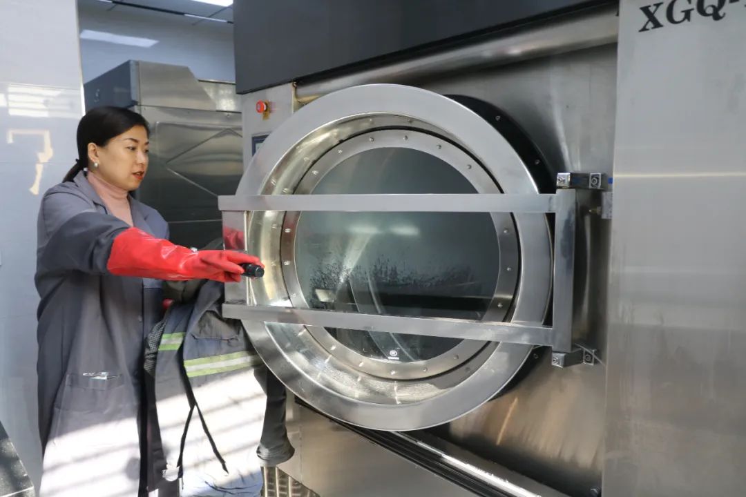 “工作服一定要洗凈、烘干,礦工兄弟們下井干活那么累,一定要讓他們穿上干凈、舒適的衣服。”該公司行政部洗衣房職工張福榮說道。
