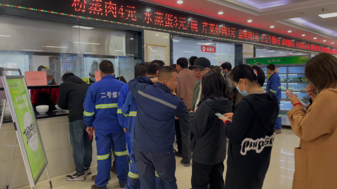 中午,走進(jìn)二號(hào)煤礦職工餐廳,空氣中各色美食的香味讓人食欲大增,新式菜品窗口早已排成了長(zhǎng)隊(duì)。大家一邊排隊(duì)等餐,一邊熱烈討論,歡聲笑語(yǔ)中,大家的幸福指數(shù)持續(xù)“飆升”。