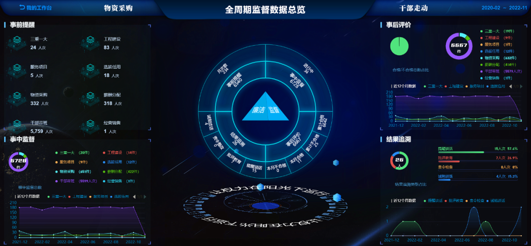 “事前預警提醒、事中跟進監(jiān)督再提醒、分析評價、結果追溯閉環(huán)。”作為一體推進“三不腐”與具體業(yè)務的融合應用的生動實踐,現(xiàn)如今,這種全周期監(jiān)督模式已經(jīng)貫穿到平臺監(jiān)督具體事項推進的每一步環(huán)節(jié),不僅實現(xiàn)了紀檢干部“咬耳扯袖”式的日常監(jiān)督與業(yè)務工作依規(guī)依紀同步推進,同時也成為了業(yè)務部門、分管領導“一崗雙責”落地推進的主要平臺抓手。