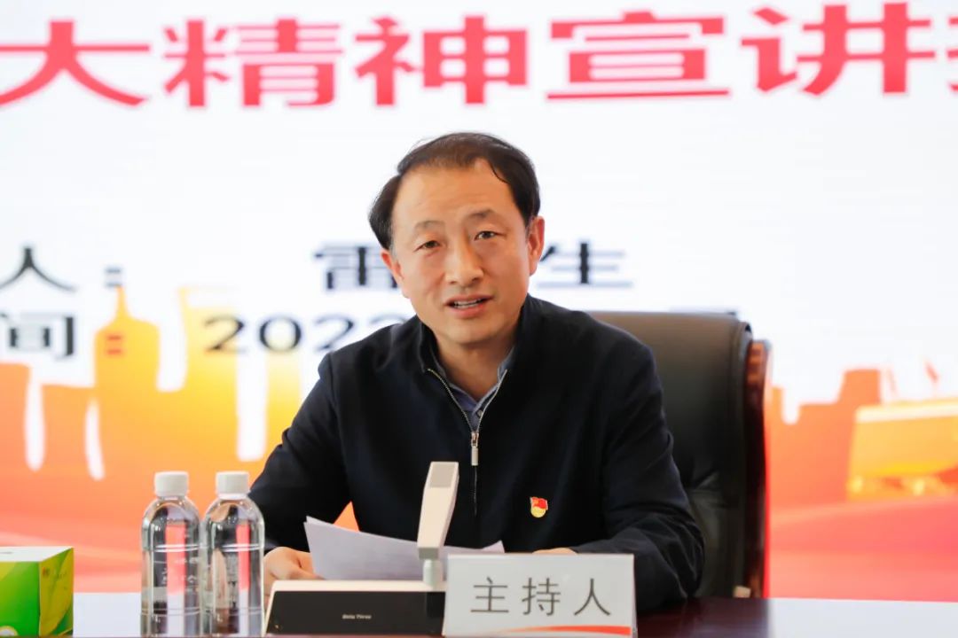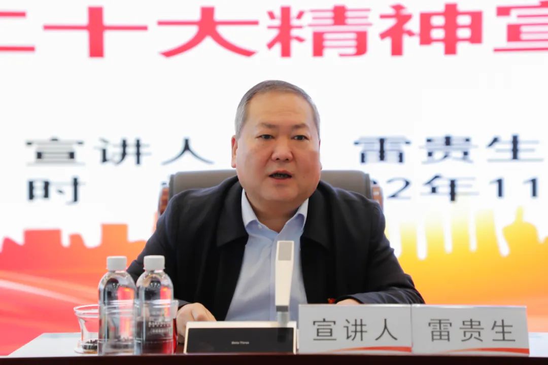 雷貴生圍繞“黨的二十大的主題、主要成果”“關(guān)于過去5年的工作和新時(shí)代10年的偉大變革”“關(guān)于馬克思主義中國化時(shí)代化”“關(guān)于中國式現(xiàn)代化”“關(guān)于全面建設(shè)社會主義現(xiàn)代化國家的目標(biāo)任務(wù)”“關(guān)于堅(jiān)持黨的全面領(lǐng)導(dǎo)和全面從嚴(yán)治黨”“關(guān)于應(yīng)對風(fēng)險(xiǎn)挑戰(zhàn)”七方面內(nèi)容,對黨的二十大提出的新思想、新觀點(diǎn)、新要求進(jìn)行了生動細(xì)致、深入淺出的宣講,并對公司學(xué)習(xí)宣傳貫徹黨的二十大精神進(jìn)行了安排部署。