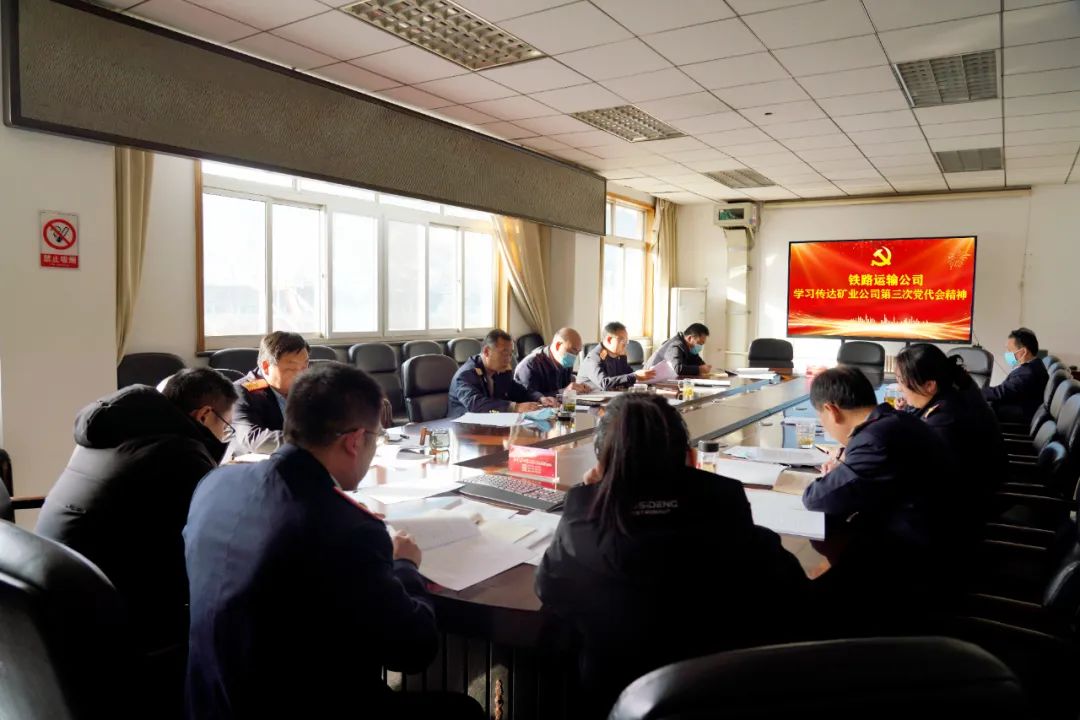 12月21日下午,鐵路運(yùn)輸公司召開專題會議,學(xué)習(xí)傳達(dá)公司第三次黨代會精神,該公司班子成員、各支部書記以及部門負(fù)責(zé)人參加了會議。