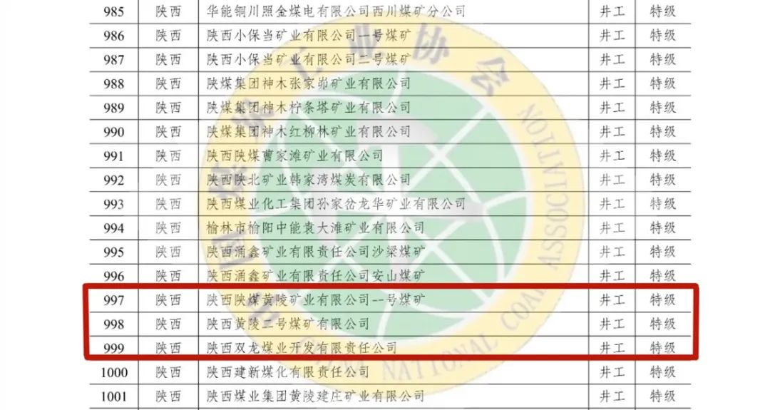 12月22日,中國煤炭工業(yè)協(xié)會發(fā)布了2020—2021年度煤炭工業(yè)安全高效礦井(露天)名單,黃陵礦業(yè)一號煤礦、二號煤礦、雙龍煤業(yè)分別被命名為“2020—2021年度煤炭工業(yè)特級安全高效礦井”。