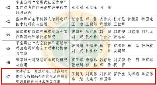 近日,從中國煤炭工業(yè)協(xié)會(huì)再傳喜訊,《黃陵礦業(yè)一號(hào)煤礦基于動(dòng)態(tài)地質(zhì)模型大數(shù)據(jù)融合迭代規(guī)劃控制策略的智能開采技術(shù)研究應(yīng)用》入選2022年度煤炭行業(yè)標(biāo)桿案例。