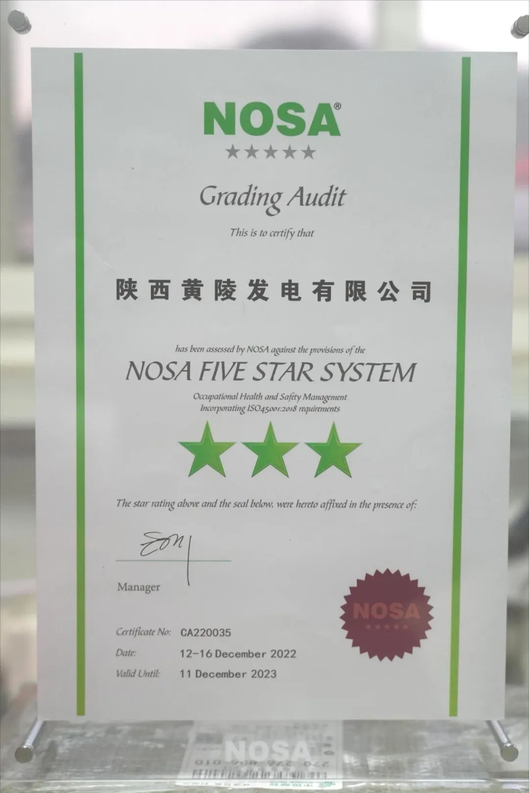 會(huì)上,諾誠(chéng)公司審核組組長(zhǎng)許茂奕充分肯定了黃陵發(fā)電公司在推行基建NOSA安健環(huán)管理過程中付出的努力和取得的成績(jī),對(duì)公司取得基建NOSA安健環(huán)管理三星級(jí)標(biāo)準(zhǔn)表示祝賀。