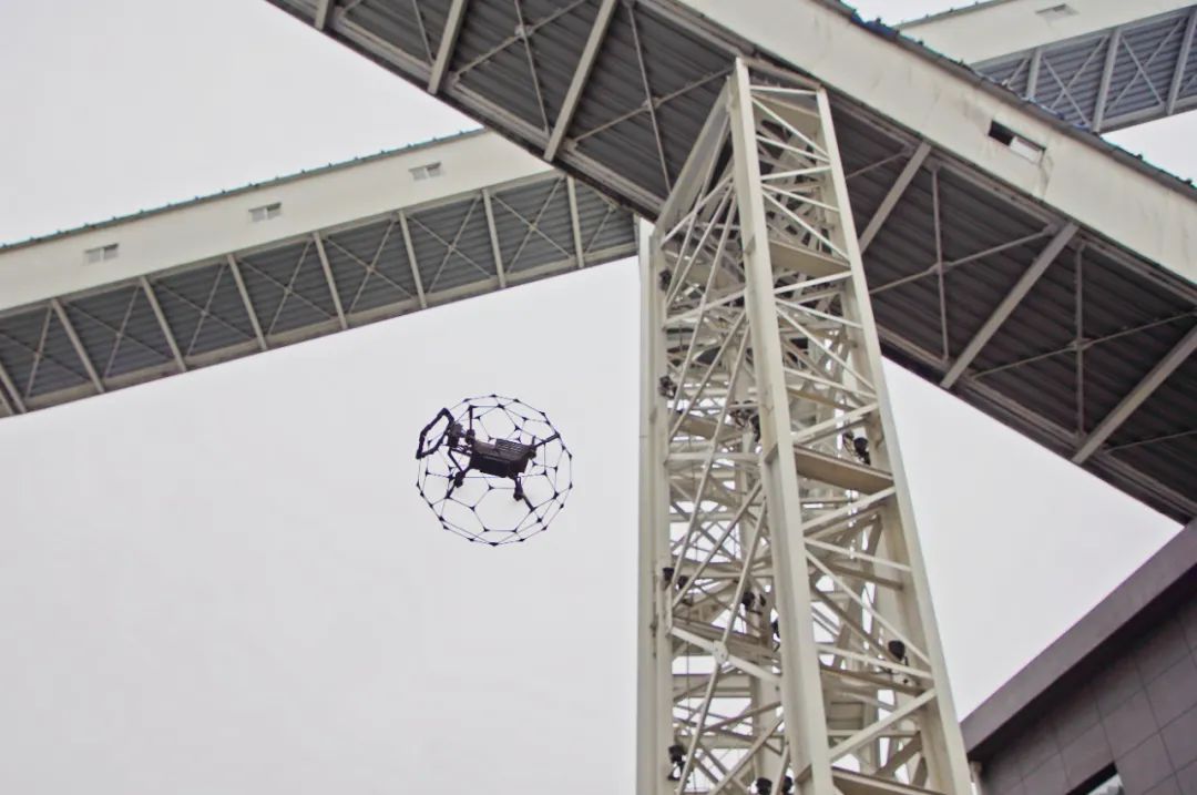 “我們選煤廠共有18座高空棧橋鋼結構,巡檢人員無法到達頂部進行檢查,日常要檢查螺栓、貝雷架、鋼構是否有變形受損情況就成了大難題。”選煤廠技術員張弛一邊操控著無人機一邊介紹道:“一般無人機在皮帶廊棧橋下穿越和飛行,受風速和信號影響,很容易刮碰到螺旋槳,造成無人機墜毀,圖像傳輸也模糊,現(xiàn)在的這種球型無人機不僅不怕碰撞,還可以在沒有信號的區(qū)域正常飛行,通過移動終端實時回傳高清圖像。”
