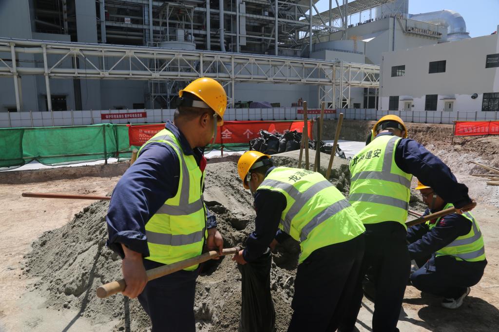 此次演練模擬該公司店頭電廠二期2×660mw輔助廠房材料庫(kù)項(xiàng)目因持續(xù)降雨,導(dǎo)致雨水涌入深基坑,可能出現(xiàn)塌方危險(xiǎn)。該公司“雨季三防”辦公室接到命令后,立即通知現(xiàn)場(chǎng)指揮部組織全體搶險(xiǎn)人員及時(shí)排除險(xiǎn)情。