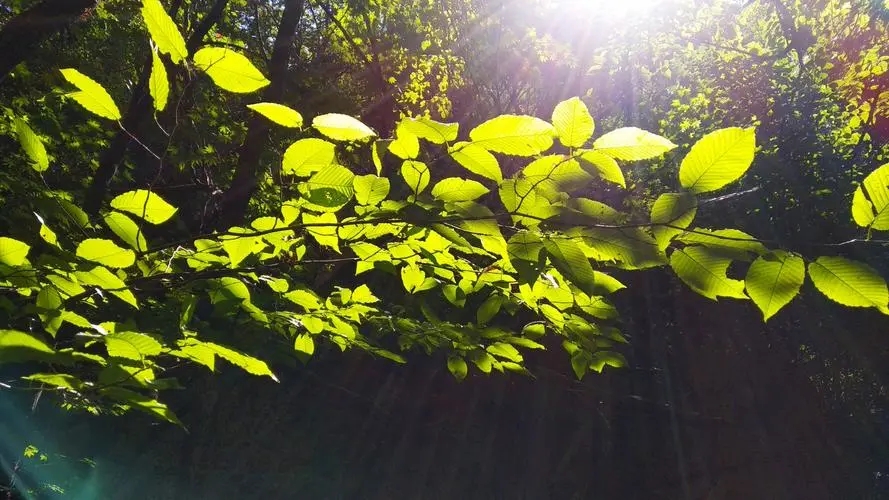 草葉上花瓣上滾動著晶瑩剔透的露珠兒,一顆顆晨露折射出太陽的光芒,那么柔和溫潤。露珠兒的顏色也是多彩的,它是牽?;ǖ牡?,角蒿的玫粉,濱菊的瑩白,待宵花的明黃,以及草葉的嫩綠,它的落腳點在哪里,它就是與之相吻合的顏色。每一顆晶瑩剔透的露珠兒都折射出一個五彩斑斕的世界,純澈而可愛,美妙而美好。陽光穿過樹的枝葉投射過來,林間閃爍著夢幻迷離的光芒。陽光照射到的草地是光鮮亮麗的明綠色,未照射到的則是深沉飽滿的暗綠色,那深淺不一的綠織成了一塊塊變幻莫測的綠絨毯,柔柔的鋪在草坪上,上面撒滿陽光的味道,還有花草淡淡的清香。