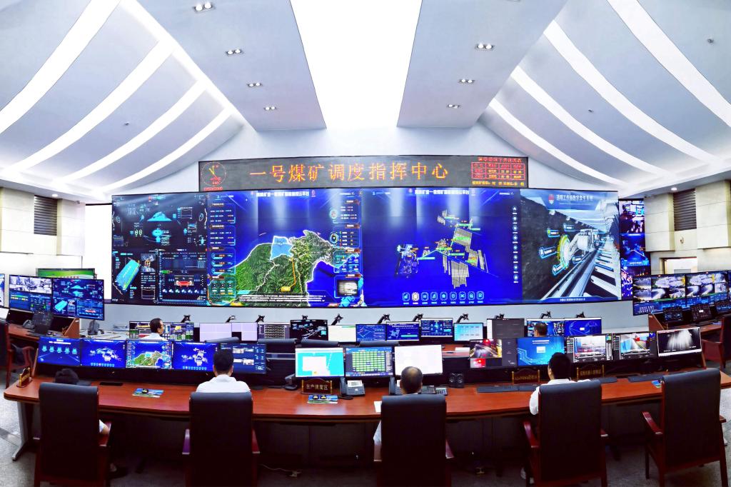 走進(jìn)該礦調(diào)度指揮控制中心,在顯示屏上可以看到:上百臺設(shè)備有序運轉(zhuǎn),從割煤、推溜、移架到運輸,滾滾烏金“搭乘”皮帶一路“歡歌”,暢通無阻地奔向目的地……唱響了該礦智能開采的“主旋律”。