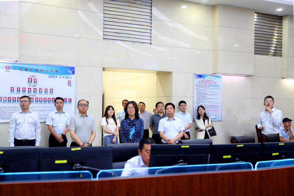 在一號煤礦智能調(diào)度指揮控制中心,束華一行詳細了解了智能管控云平臺、基于動態(tài)地質(zhì)模型大數(shù)據(jù)融合迭代規(guī)劃控制策略的智能開采技術(shù)、“四治理一優(yōu)化+AI+NOSA”安全管理體系、煤礦智能安全風(fēng)險一體化防控平臺等煤礦智能化系統(tǒng)建設(shè)及運行情況。