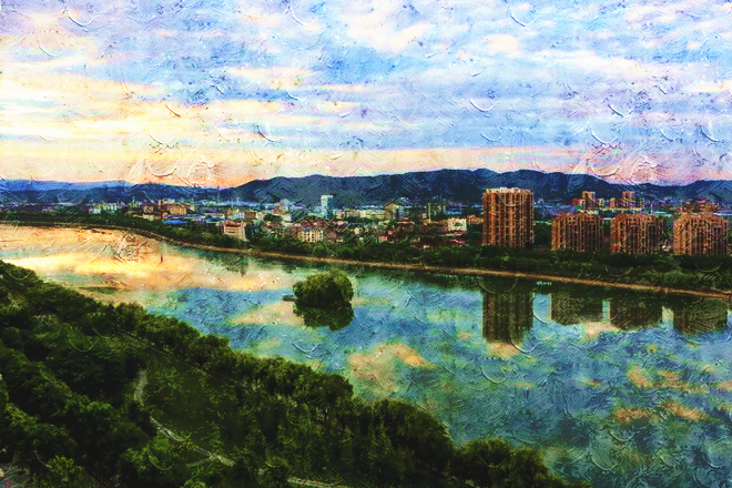 我時(shí)常立于沮河旁,看白云徐徐,流水潺潺,青山巍巍。若是時(shí)間能夠定格,這理應(yīng)是一幅靜美的江山水畫。但當(dāng)微風(fēng)拂來,這畫中的水便攪動(dòng)著云影撞向山,破碎后重新融到一起去。這水如絲帶般纏在了山腳,云如煙般爬上了山頂。時(shí)有飛鳥掠過這翻涌的云霧,帶著一絲云氣,驚起一朵朵水花。這江山水畫雖不再靜,但美意更上一層,似仙境。
