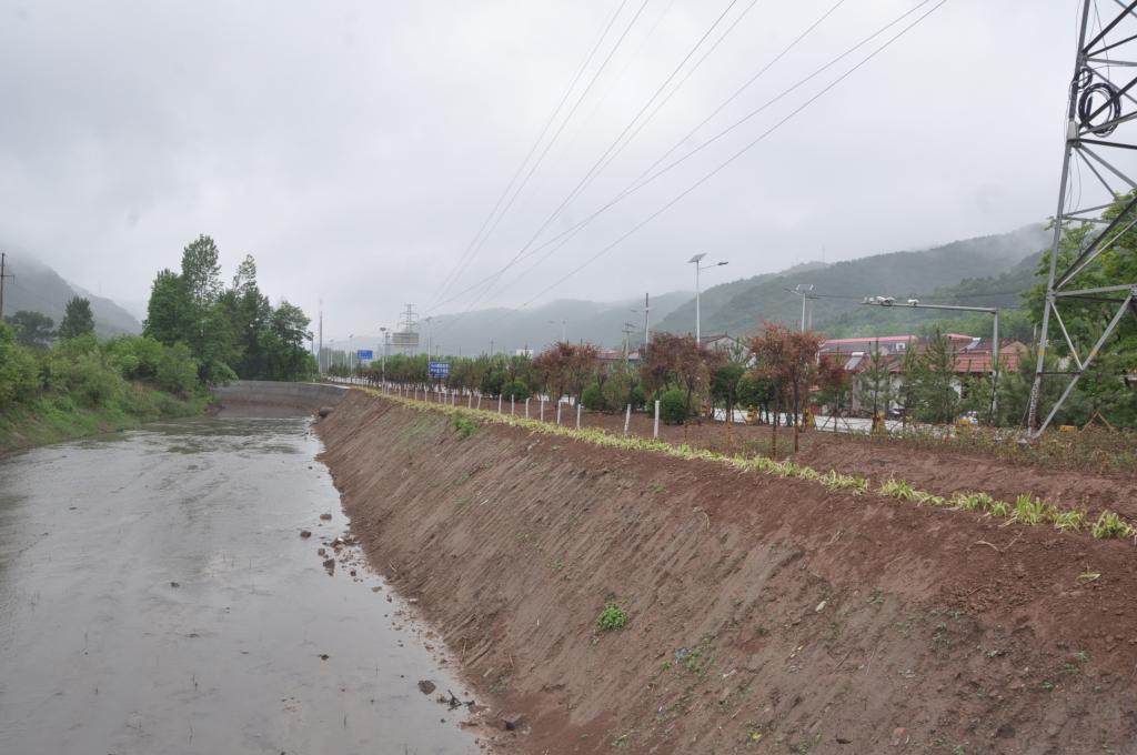 為此,該礦高度關(guān)注沮河水治理,常態(tài)化進(jìn)行淤泥清理、河道加固等工作。自2022年起,在原有基礎(chǔ)上主動(dòng)發(fā)力,對(duì)長約300米的河道淤泥進(jìn)行深層清理,疏通了河道水流,并將河道拓寬至10米,穩(wěn)定了河水流速,保障了汛期安全,利用混凝土鋼筋澆筑工藝建成河道護(hù)坡,對(duì)占地約6畝的河堤進(jìn)行平整培土綠化,累計(jì)種植景觀樹種300余棵,使這條寶貴的“綠色帶”更加美麗宜人。