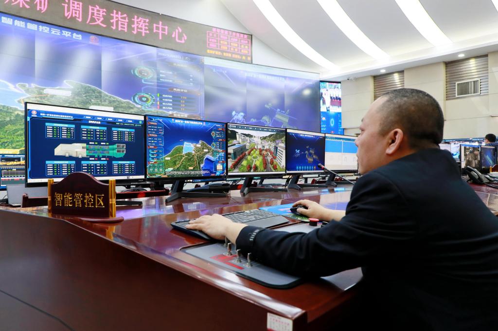 10月10日夜班,綜采一隊(duì)地面遠(yuǎn)程操控員袁曾曾在智能調(diào)度指揮控制中心,滑動(dòng)了電腦屏上的“一鍵啟動(dòng)”,通過中央大屏4K高清畫面可以看到,采煤機(jī)滾筒飛轉(zhuǎn),液壓支架來回伸縮,烏金如流水般經(jīng)過刮板運(yùn)輸機(jī)源源不斷地運(yùn)往地面,偌大的工作面卻不見一個(gè)人身影。