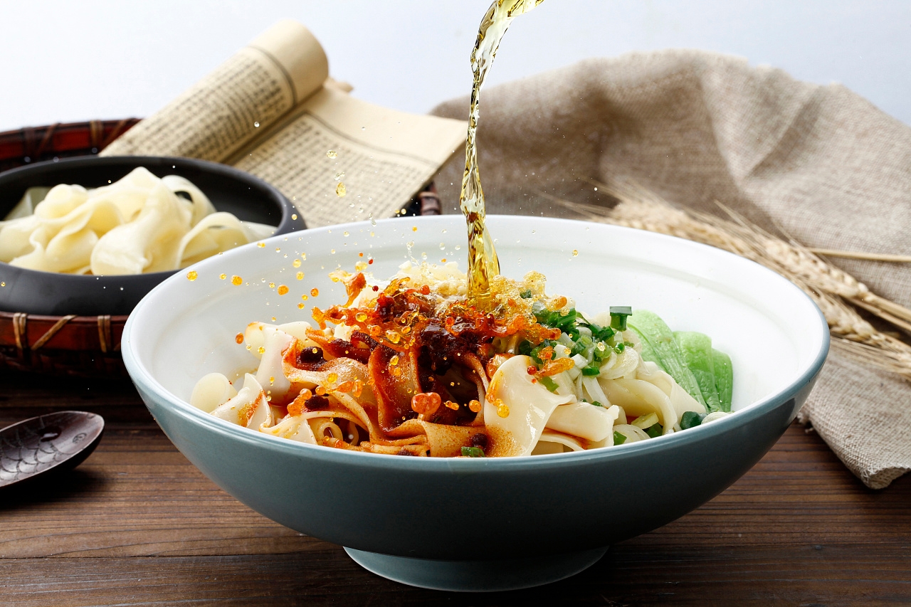 油潑面是陜西著名的美食,被大家熟知的原因是在《白鹿原》中的影視片段,一個樸實的農(nóng)家小院中,一個并不富裕的鄉(xiāng)土?xí)r代,對于農(nóng)民來說,一碗油潑面,一勺辣子就成為了一頓特別的美食。所以,油潑面一直縈繞在陜西孩子的記憶中,不知不覺成為了陜西鄉(xiāng)土的平仄。