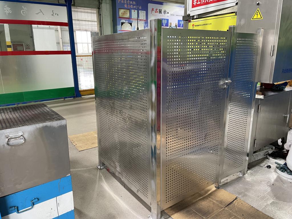 盤(pán)圓放線架防護(hù)裝置結(jié)構(gòu)簡(jiǎn)單且巧妙,主體用鐵皮圍欄,下方兩側(cè)開(kāi)孔引入拉直后的鋼筋線,而圍欄中間特意用透明玻璃覆蓋,方便崗位工清楚地觀察到設(shè)備運(yùn)行的具體狀況,在增加防護(hù)罩抗壓性的同時(shí)又起到良好的安全防護(hù)效果,杜絕了設(shè)備運(yùn)行中存在的安全隱患。