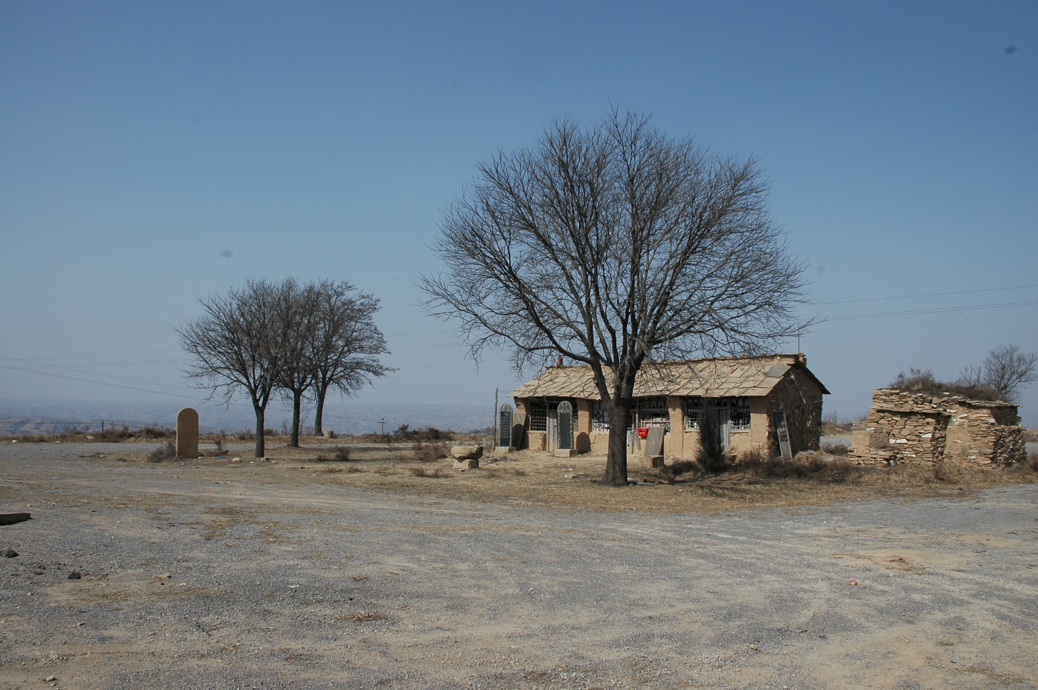 不遠處,幾棵孤獨的槐樹映入了眼簾,想必那就是目的地了。幾分鐘后,在公路邊,一個被風吹的失去了色彩即將要四分五裂的廣告牌上,隱約看到有赫連勃勃的字樣。到跟前后,路邊還樹有一塊石碑,上書:赫連勃勃墓,從石碑側后方沿著一條土路便拐進一個黃土院子。