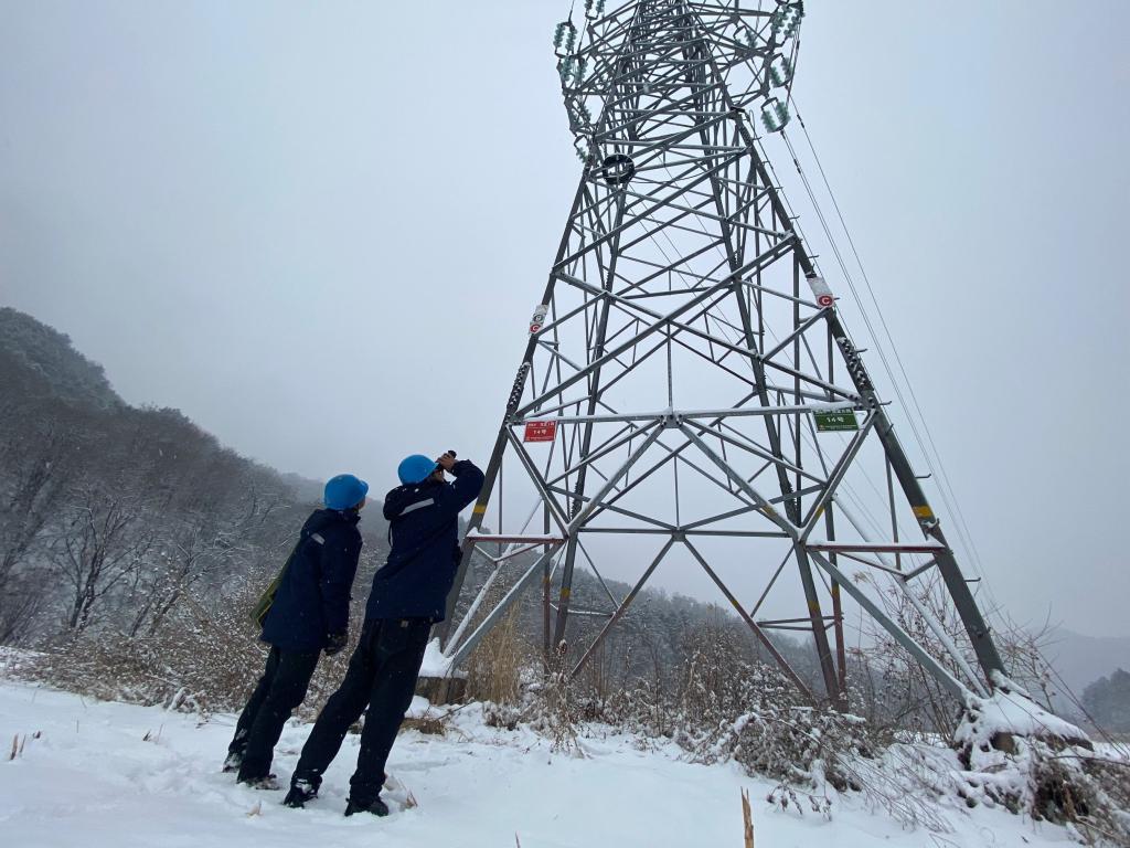 寒風(fēng)夾雜著雪花迎面襲來(lái),平時(shí)半個(gè)小時(shí)的路程,今天他們足足花費(fèi)了2個(gè)多小時(shí)才抵達(dá)鐵塔附近。巡線人員到達(dá)鐵塔線路下顧不得歇息,高新宇便操控著無(wú)人機(jī)巡視著架空線路上的積雪和覆冰,權(quán)旭寶則登上鐵塔用望遠(yuǎn)鏡仔細(xì)觀察鐵塔上金具、瓷瓶、線夾等設(shè)施完好情況。