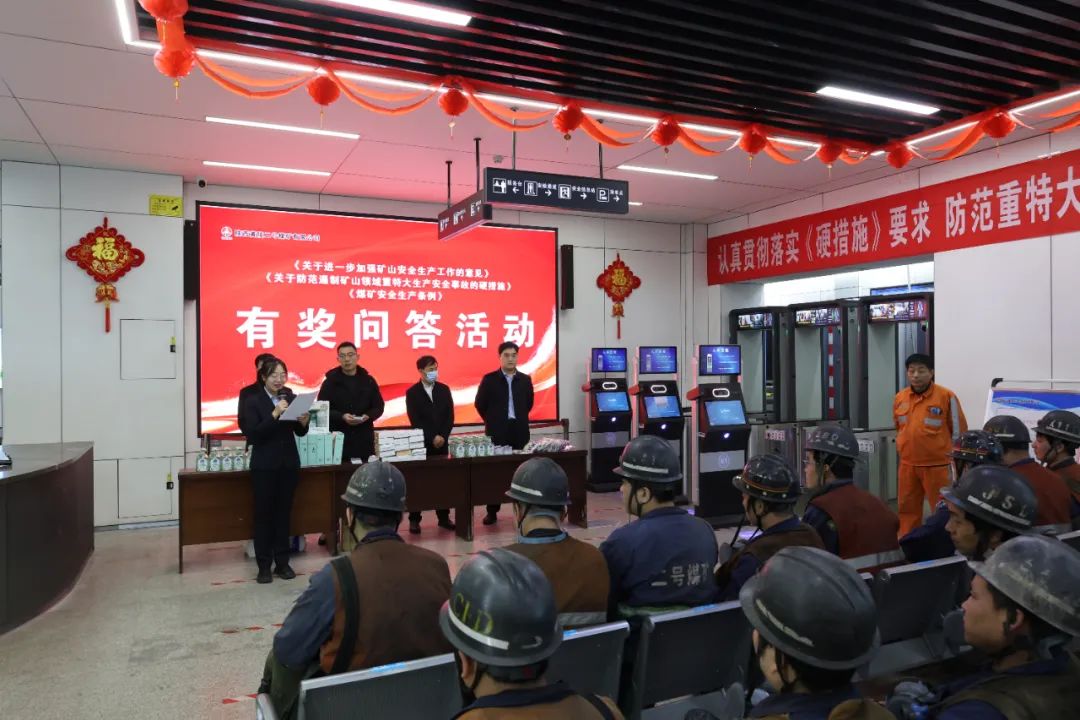 2月25日,在二號煤礦井口候車室一場深入貫徹《意見》《條例》《八條硬措施》的安全有獎知識問答活動正在火熱開展。