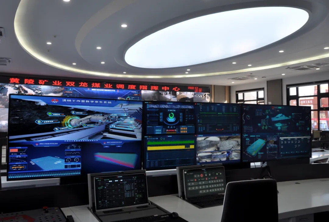瓦斯抽采、火災(zāi)預(yù)警、人員精確定位、可視化精準(zhǔn)采煤……走進(jìn)雙龍煤業(yè)指揮調(diào)度中心,井下的各區(qū)域和生產(chǎn)過(guò)程都 顯示在大廳的各個(gè)區(qū)域顯示屏上。