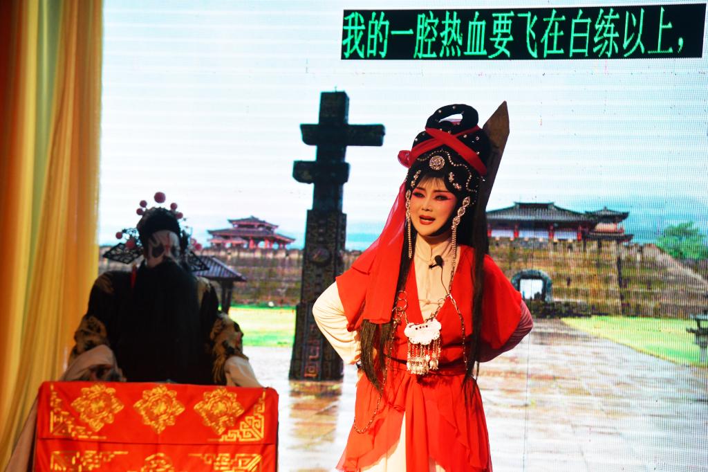 我撤出了后臺(tái),靜靜地坐在前臺(tái)看這場《轅門斬子》,看到的是楊六郎的軍紀(jì)嚴(yán)明,大義滅親;看到的佘太君的愛孫心切;看到八賢王恐失國家棟梁;最讓人津津樂道的是穆桂英那份中國女性的勇敢,敢愛敢恨,為愛情,獨(dú)闖軍營救宗保,為大義,獻(xiàn)降龍木大破天門陣,報(bào)國家百姓安寧。