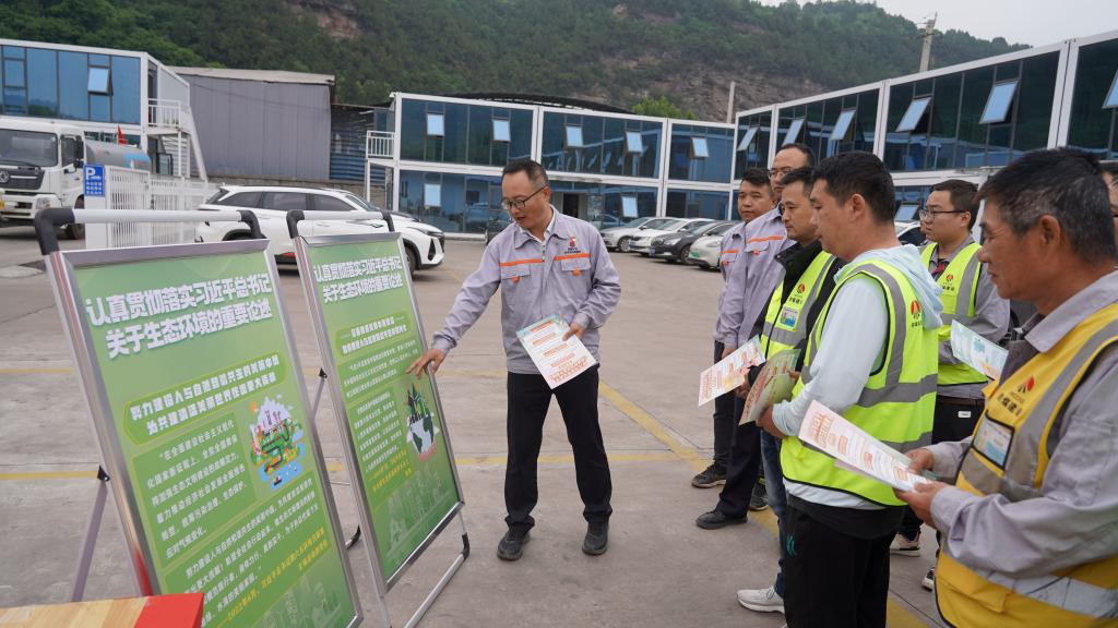 沮源發(fā)電公司通過在臨建辦公區(qū)域設(shè)立咨詢臺(tái)、懸掛橫幅,擺放展板、發(fā)放《生態(tài)環(huán)境保護(hù)小知識(shí)》等活動(dòng)小冊子,引導(dǎo)干部職工自覺踐行綠色發(fā)展理念。