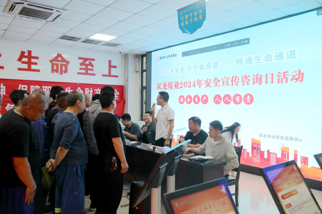 6月16日上午,雙龍煤業(yè)開展了“安全宣傳咨詢?nèi)铡被顒?dòng),通過在現(xiàn)場(chǎng)播放安全宣傳PPT、發(fā)放各類安全宣傳圖冊(cè)、擺放安全展板和安全知識(shí)競(jìng)猜及現(xiàn)場(chǎng)安全咨詢等形式向廣大干部職工宣傳普及安全生產(chǎn)知識(shí),營(yíng)造出人人關(guān)注,人人參與的濃厚氛圍。(穆海宏 孫練)